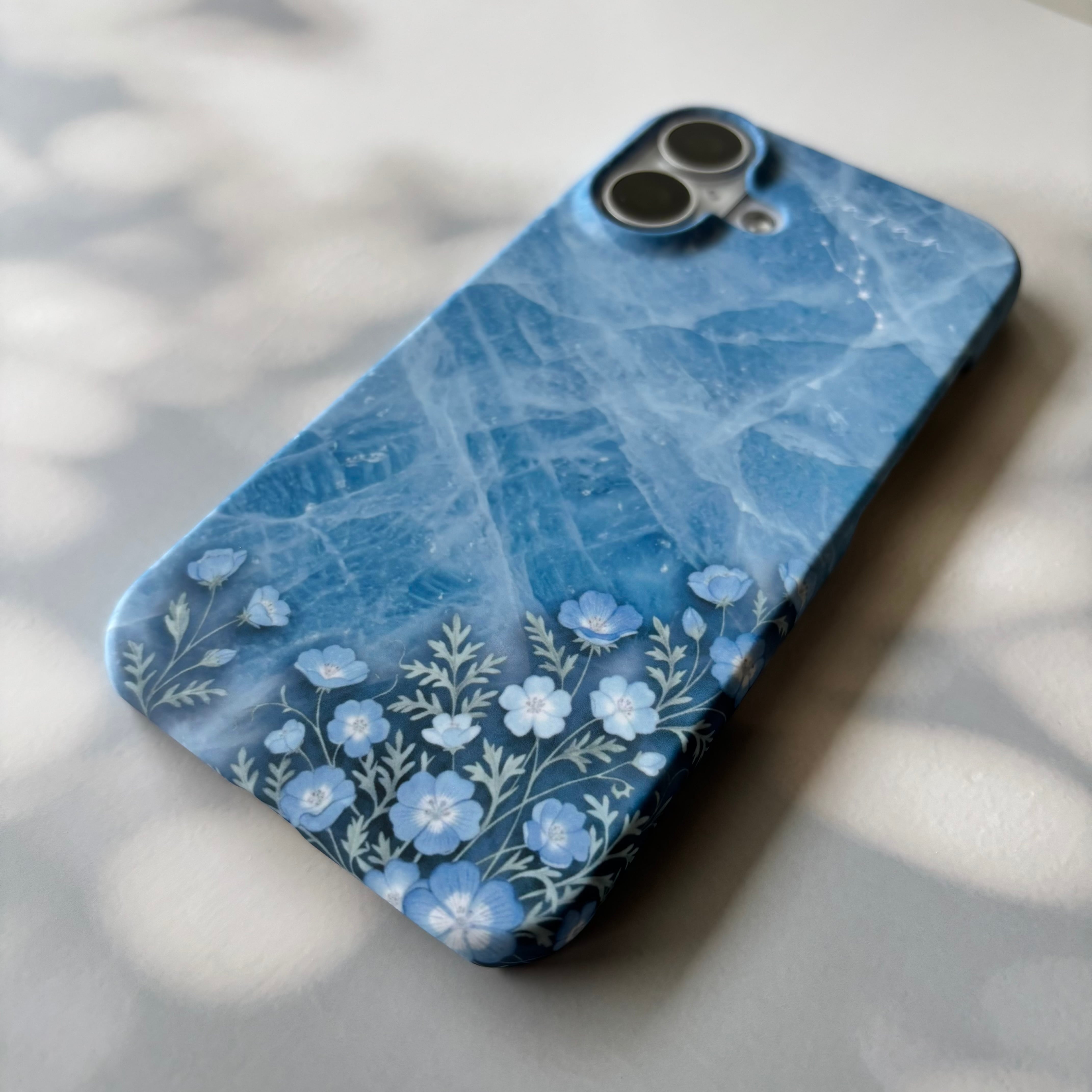 天然石の質感を再現するため、複雑なテクスチャを組み合わせてデザインしています。印刷の特性上、機種のサイズなどによって、石の色合いやフラワーアートのスケッチ、アルファベットや星座の大きさ、配置が掲載写真と異なる場合がございます。こちらは防ぐことが難しい仕様のため「唯一無二の、あなただけの手元のアート」として、その一点物の価値をお楽しみいただければ幸いです。